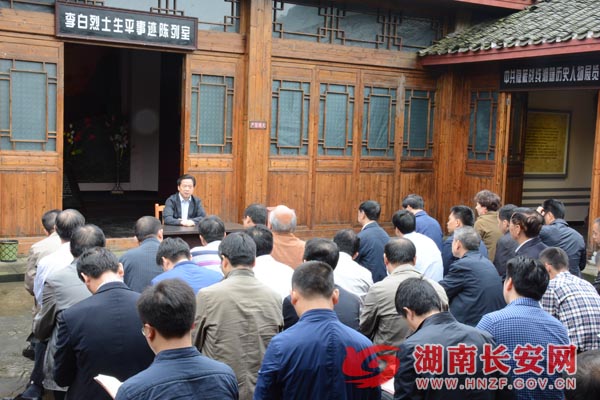 湖南长安网长沙5月27日讯(记者 张英)为深入开展“两学一做”学习教育,进一步提升党员干部的理想信念和党性修养,5月27日,省委政法委机关开展集体党日活动,组织全体机关党员到浏阳市张坊镇李白烈士纪念馆(全国国家安全教育基地、全省爱国主义教育基地)参观学习,接受理想信念教育。省委政法委常务副书记、省综治办主任田福德结合李白烈士的英雄事迹,联系工作实际和队伍建设实际,围绕“坚定理想信念,做一名合格共产党员”,在纪念馆现场给大家上了一堂生动的党课。副书记熊晓强、机关各党支部在职党员及部分离退休老党员50余人参加活动。