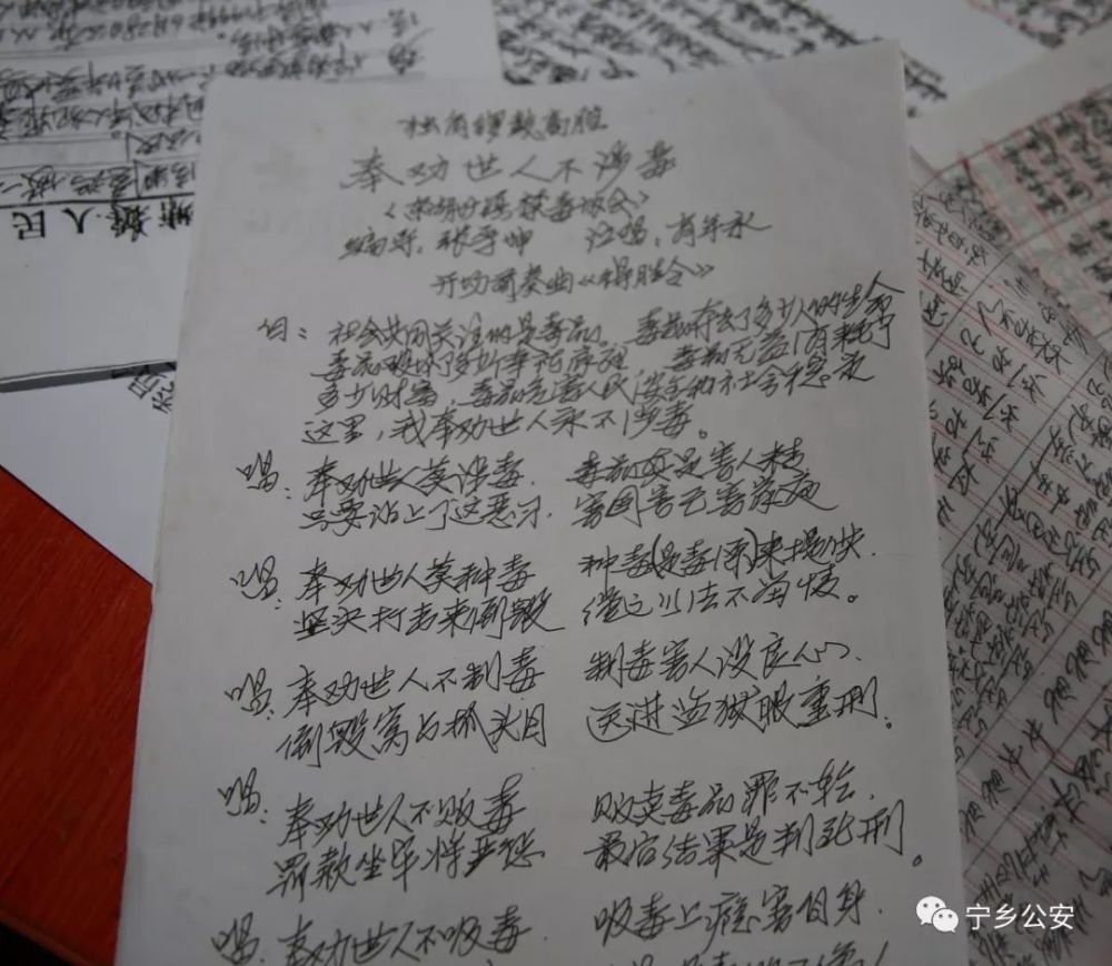 禁毒 ,光从娃娃抓起还不够,如何才能把宣传教育工作做到家喻户晓、深入人心呢?张老苦苦琢磨,自己编写了一个名叫《奉劝世人莫涉毒》的演唱资料,请了一位70多岁的老艺人肖永年用湘剧高腔的演唱方式进行宣传,这种新颖独特的方式,竟取得不错的成效,获得了村民们的一致好评!