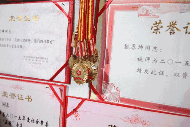 不管是炎热三伏还是雨雪寒冬,张老每年用于协会的工作日多达200多天。从退休起到现在的23年里,骑坏了5辆摩托车,却用这份使命感和责任感换来了大大小小的证书奖状,挂满了这一面农家小屋的墙壁。