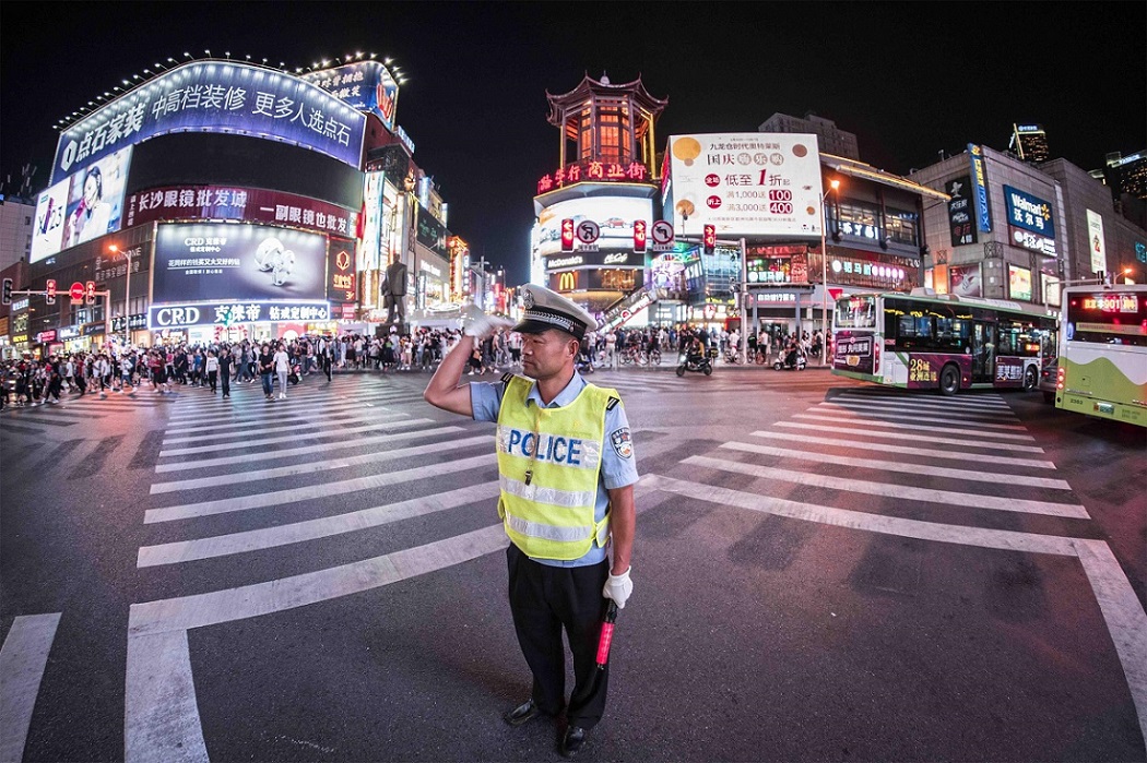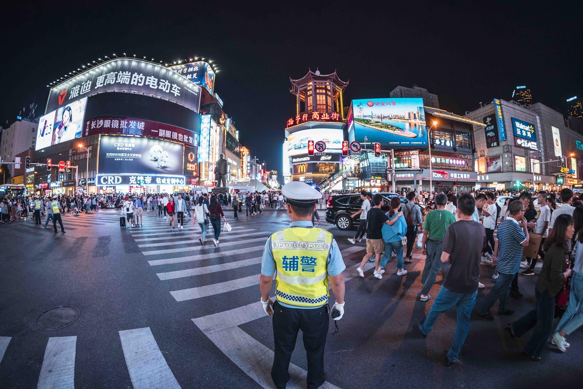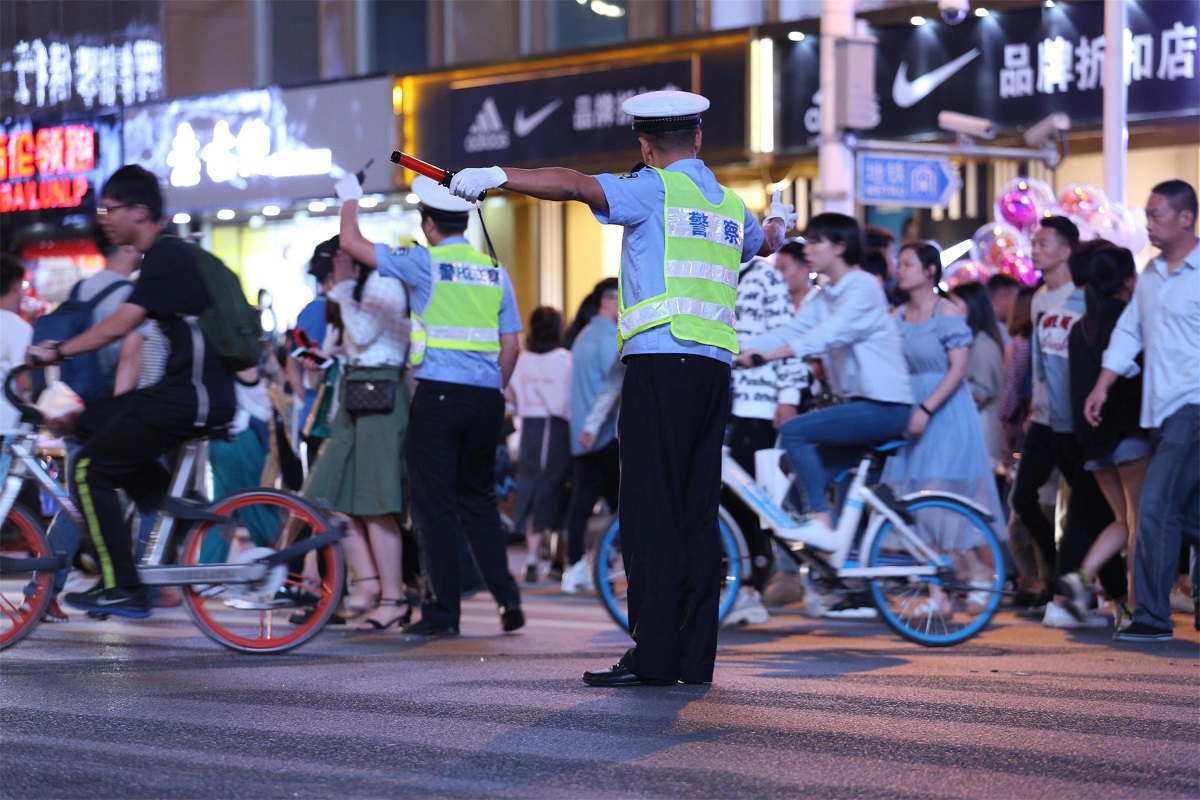 这组照片是2018年10月1日在长沙黄兴铜像前(黄兴路与解放西路口)拍摄的,这个路口也就是从今年五月长沙IFS国金中心开业以来迎来的第一个国庆节,IFS的开业标志着长沙又一新地标的形成,加上该路口国庆前夕的提质改造工程的完成使得长沙的“国际范”水准稳步提升,进一步奠定了网红城市的地位,当然随之而来的问题就是交通压力增大,一小时上万的人流量给该路口的长沙执勤交警带来了极大的挑战,长沙交警芙蓉大队的民(辅)警同志们从早上7至晚上12点一直坚守在路口保畅通,确保了该路口稳定通畅,提升了长沙的城市形象!