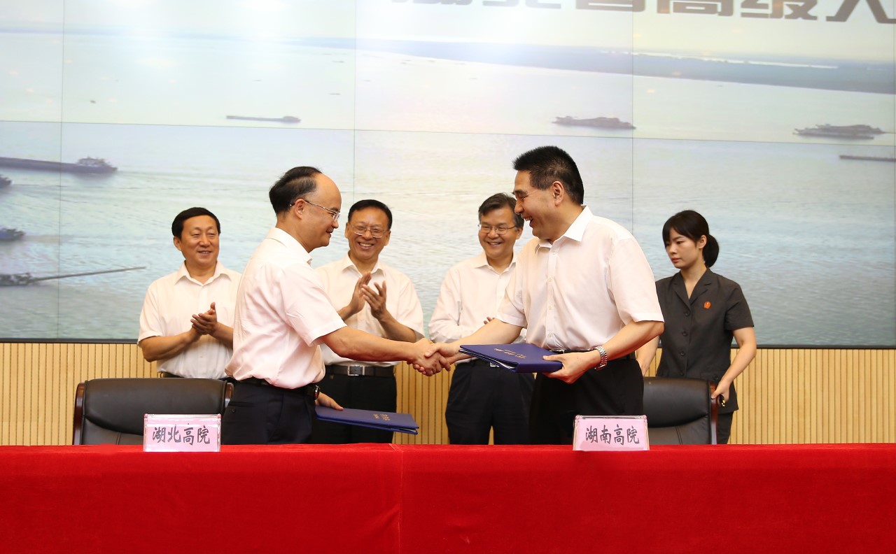 湖南高院田立文院长与湖北高院游劝荣院长共同签订《环洞庭湖环境资源审判协作框架协议》