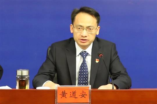 市委常委、市委政法委书记、市政法队伍教育整顿领导小组副组长兼办公室主任黄道安致发布词。
