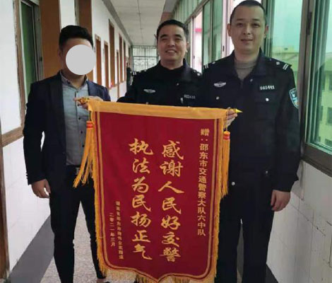邵东交警3小时神速破案 伤者家属送锦旗以表谢意