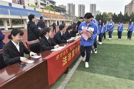 活动中,津市法院干警以新修订的未成年人保护法与预防未成年人犯罪法为主要内容对学生和家长进行普法宣传。