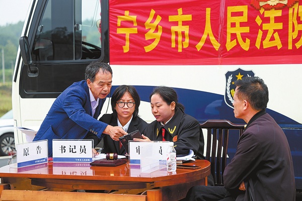 近日,湖南省宁乡市人民法院花明楼人民法庭法官将庭审搬到了宁乡市东湖塘镇的群众家门口,公开审理一起隐私权纠纷案。