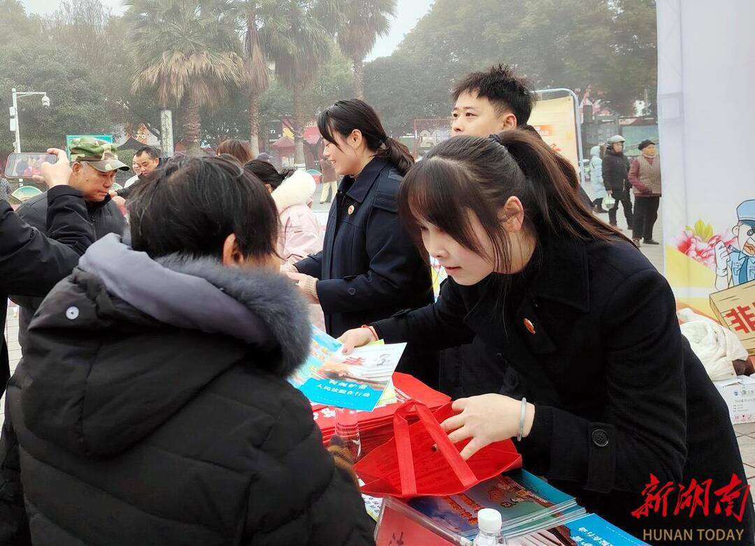 文章来源:新湖南客户端 作者: 时间:2026-01-29 10:45:17春节临近,为切实维护人民群众财产安全,营造平安和谐的节日氛围,1月28日上午,芷江侗族自治县人民法院组织干警积极参加全县防范非法金融活动常态化宣传暨2026年岁末年初防范非法金融活动集中宣传,为广大群众送上一份实用的“法律年货”。