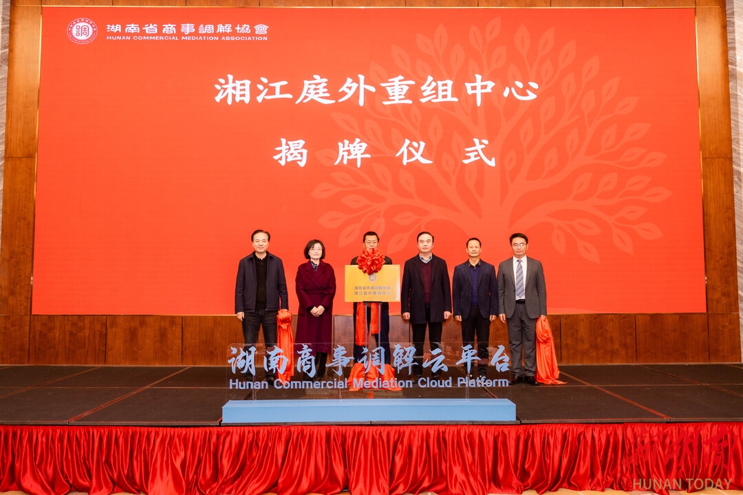 湖南省商事调解协会执行会长段彧表示,2026年,协会将全面启动“商调6+1”战略,在专业化、网络化、数字化、市场化、国际化方向系统升级。作为战略核心数字化引擎,“湖南商事调解云平台”在年会上正式启动,致力于打造智能工作系统,标志湖南商事调解数字化转型进入实质阶段。此外,“湘江庭外重组中心”揭牌成立,为企业提供司法程序外专业重组支持,助力困境企业重生,标志协会服务范畴从传统纠纷解决延伸至企业综合救治与价值重塑。