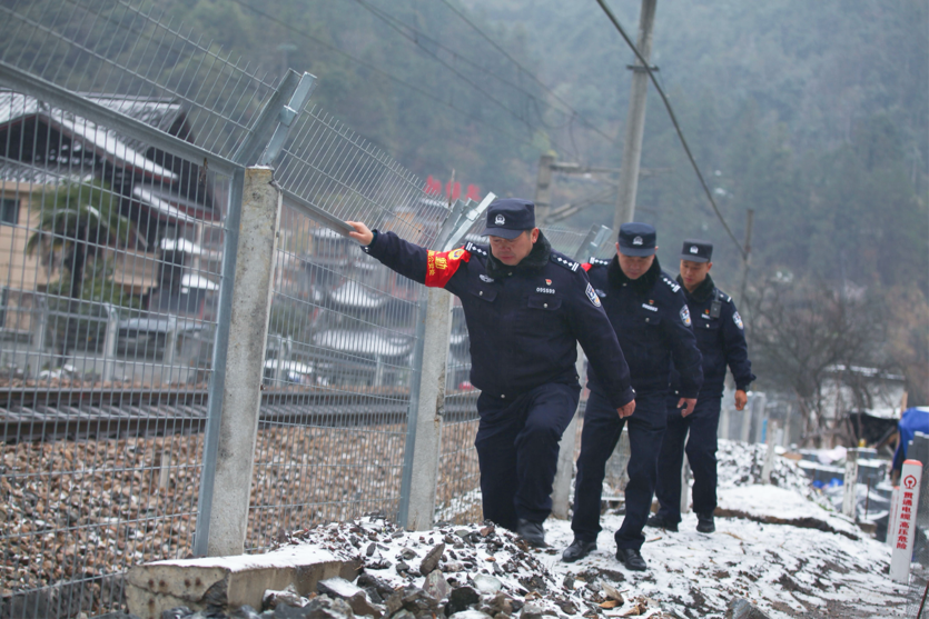地处焦柳北线上的马颈坳、墨戎镇等铁路沿线是高寒地带,这里结冰积雪多。民警们冒着风雪对铁路防护栅栏等设施设备进行细致巡查,及时清理因冰雪压倒的树木等路障。
