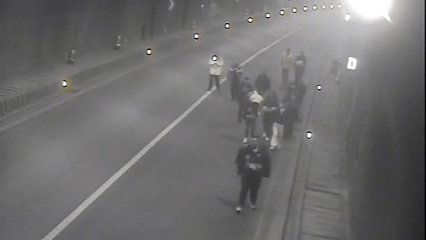 指挥中心迅速转警至涟源大队,同时通知119消防、高速养护施救部门赶往现场协调处置。随后,大队在事发地路段采取中断双向交通的临时管制措施,切断两端汇入蓝田隧道的车流,防止危险升级。