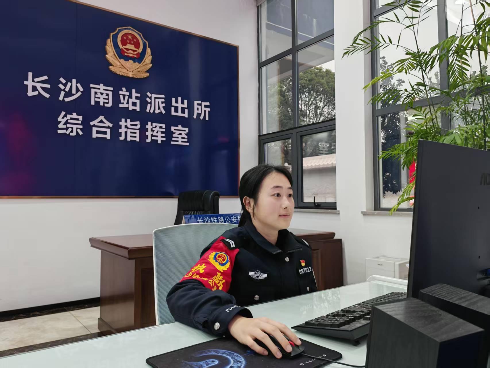 2003年出生的张心爽,是这支新警队伍中为数不多的女警,也是第一次在岗位上迎接春运。她的工作岗位在长沙南站派出所指挥室,这里是整个车站安保工作的“神经中枢”,各类警情指令、求助信息都从这里汇集、分发。“您好,长沙南站派出所,请问有什么可以帮您?”张心爽上午8点到岗后,这句温暖的问候就会在指挥室里不断重复。