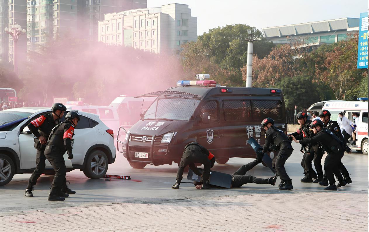 图为耒阳巡特警开展反恐演练。