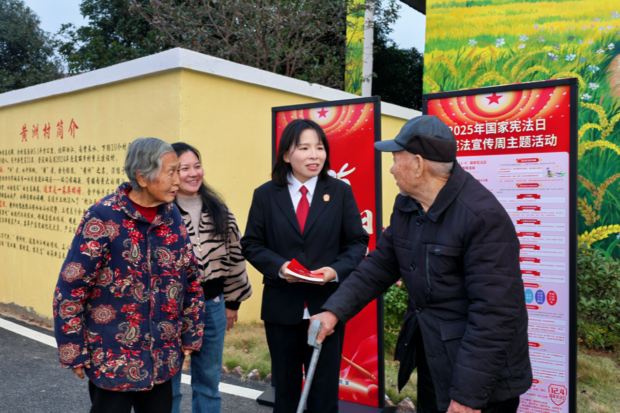 衡阳珠晖法院干警走进茶山坳镇黄洲村开展宪法宣传活动。