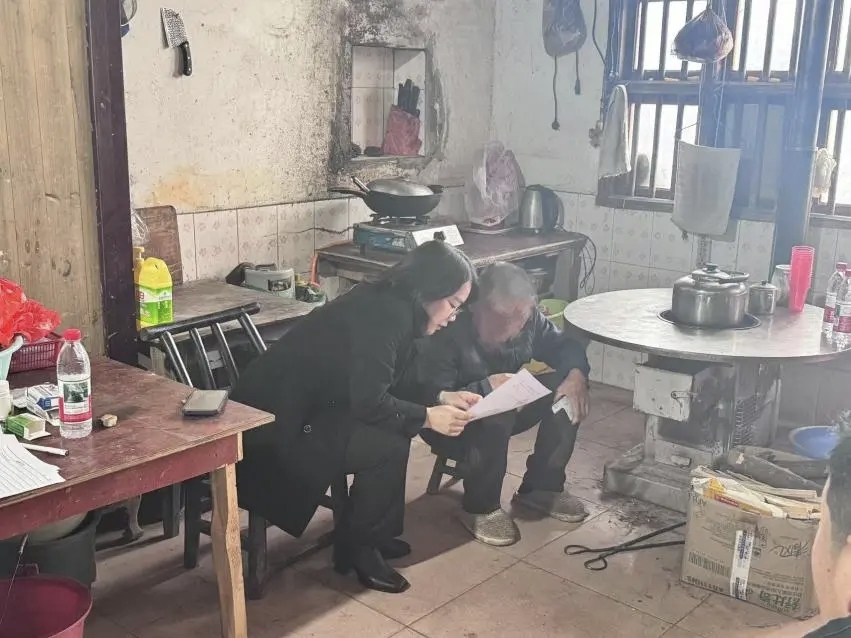此前,承办法官虽已从村书记口中了解老人家庭情况,但亲眼见到贺大爷家中简陋破旧、家徒四壁,看到老人独坐矮凳等候,面容沧桑,眼神透着哀伤时,法官震惊的心依然久久不能平复。