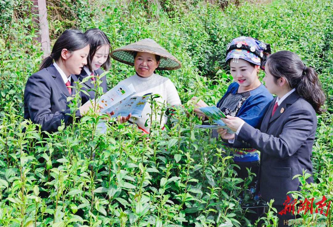 保靖县检察院干警走进茶园开展普法宣传活动,围绕劳务用工维权、农产品质量安全、生态环境保护等内容,面对面向采茶工人讲解相关法律知识,把法律服务送到田间地头。