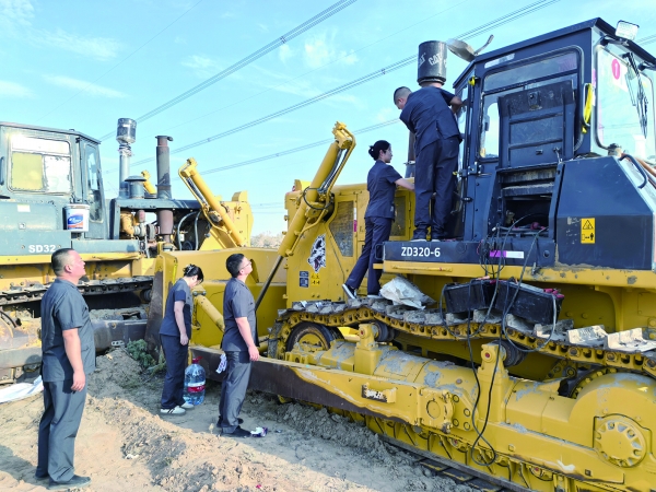 2024年9月22日,在新疆昌吉,怀化中院执行干警给被执行人藏匿在戈壁滩的机械设备贴封条。