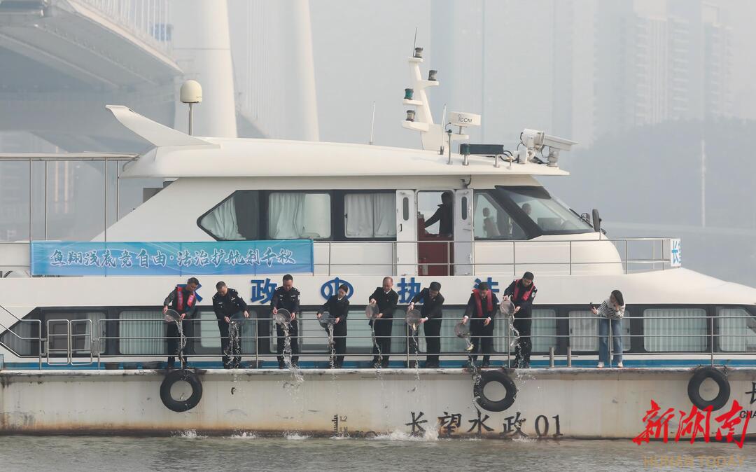 长沙市望城区检察院联合公安机关、法院、农业农村局等单位和省、市、区级人大代表、政协委员,以及在校学生举行增殖放流活动。