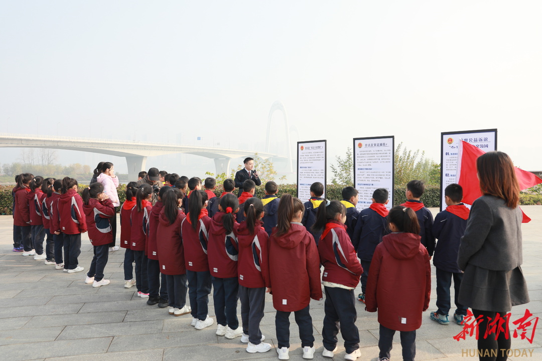 在长沙市望城区银星湾公益诉讼法治基地内,检察官向学生宣讲公益诉讼检察。