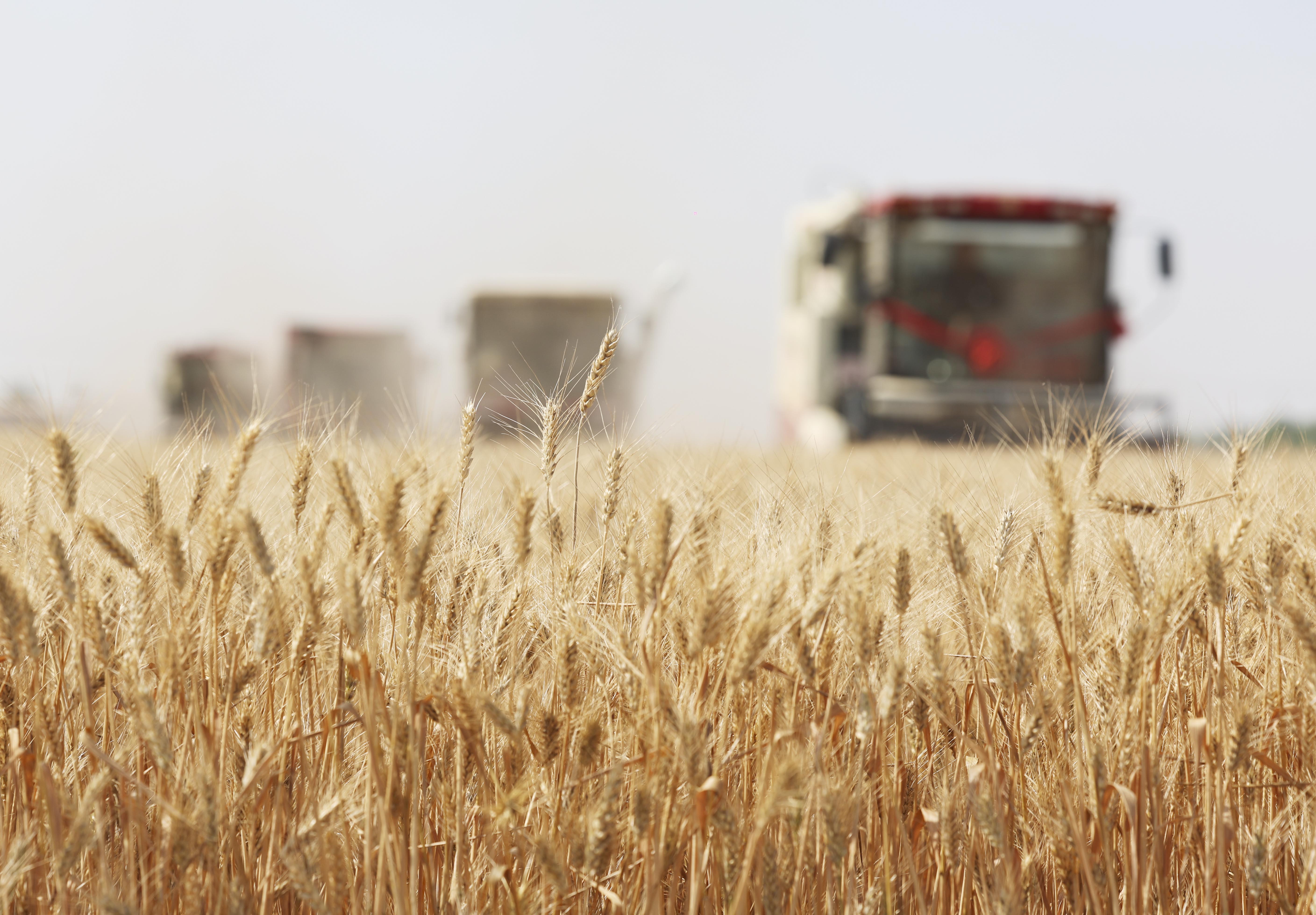 2025年6月10日,河北省石家庄市栾城区柳林屯乡东牛村村民驾驶农机收割小麦。新华社发(梁子栋 摄)