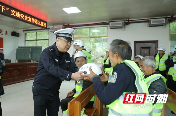 衡阳县交警为 “一老一小”、骑行人员等重点群体及全体村民送上安全头盔、荧光马甲等 “平安礼包”,手把手演示使用方法,那句 “被看见,才安全” 的叮嘱,更让文明出行的理念深植人心。