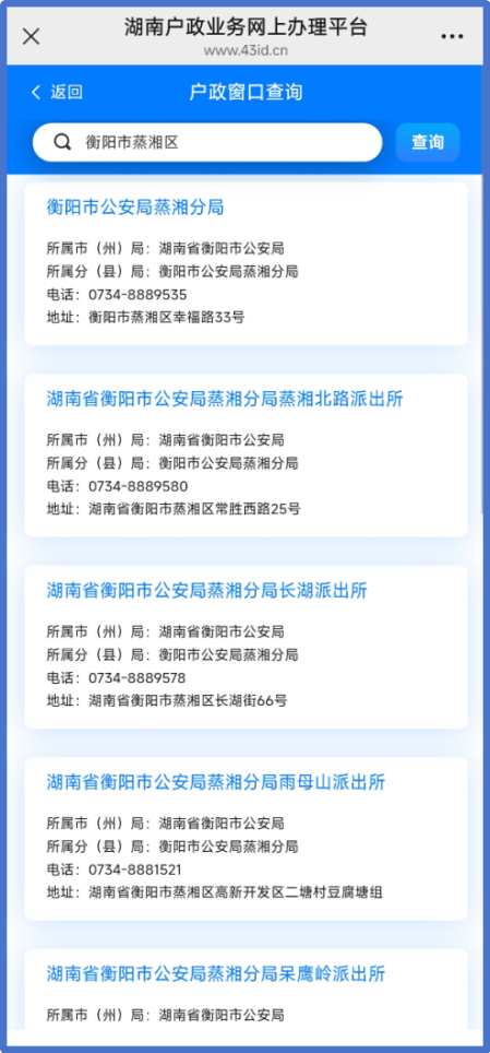 四、申请人在四项业务办理过程中,如需咨询相关问题,可在工作日(9:00-12:00,13:00-17:00)致电0731-96305。或在湖南公安服务平台下方服务攻略中点击“户政窗口查询”,查找户籍地派出所电话进行咨询。